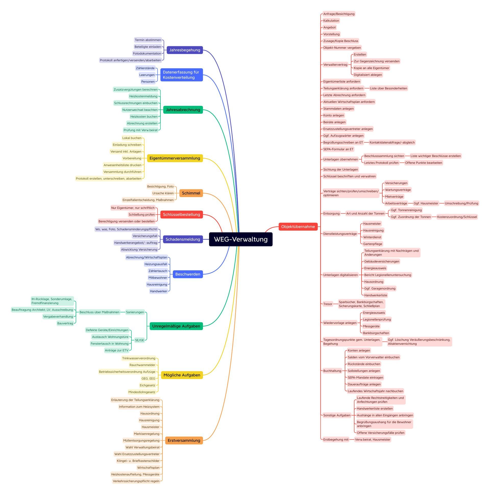 Derzeit bieten wir eine hochwertige Mindmap im DIN A0 Format zu den Themen "WEG-Verwaltung, Mietrecht und Immobilienkauf und -verkauf " zum Preis von je € 99,90 inklusive Verpackung und Versand an. Oder Sie entscheiden sich für die preisgünstige Variante im PDF-Format für nur € 50,-/Stück.